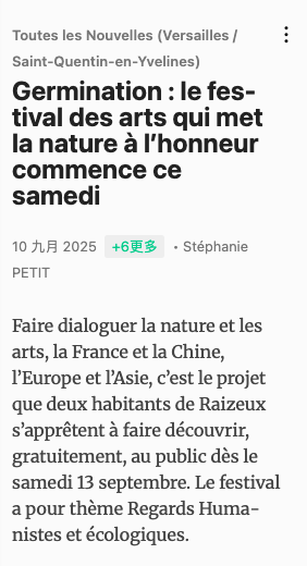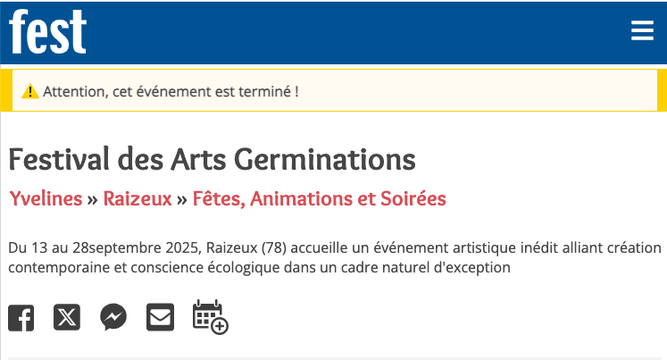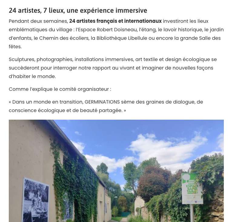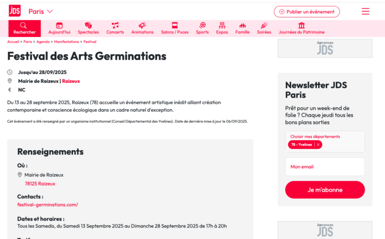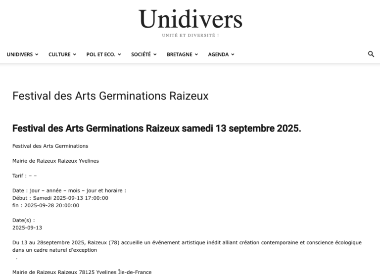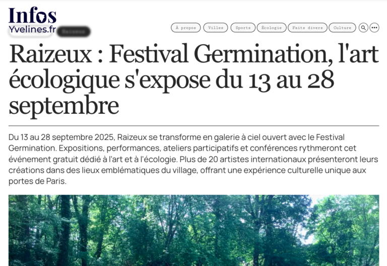 Cette page recense les articles, reportages et références relatifs au Festival GERMINATIONS dans la presse écrite, les médias en ligne, ainsi que sur les plateformes d’organisations publiques, culturelles et artistiques.